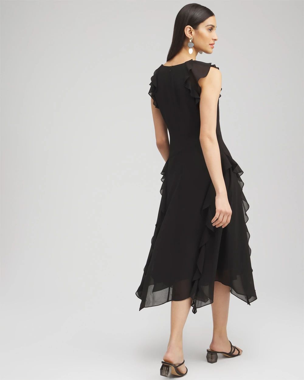 Special occasion style is simple in our Chiffon Ruffle Midi Dress. This design features an asymmetrical drop waist, plus lovely ruffle details on the skirt and sheer flutter sleeves. This dress has the right look and feel for celebrations of all kinds.