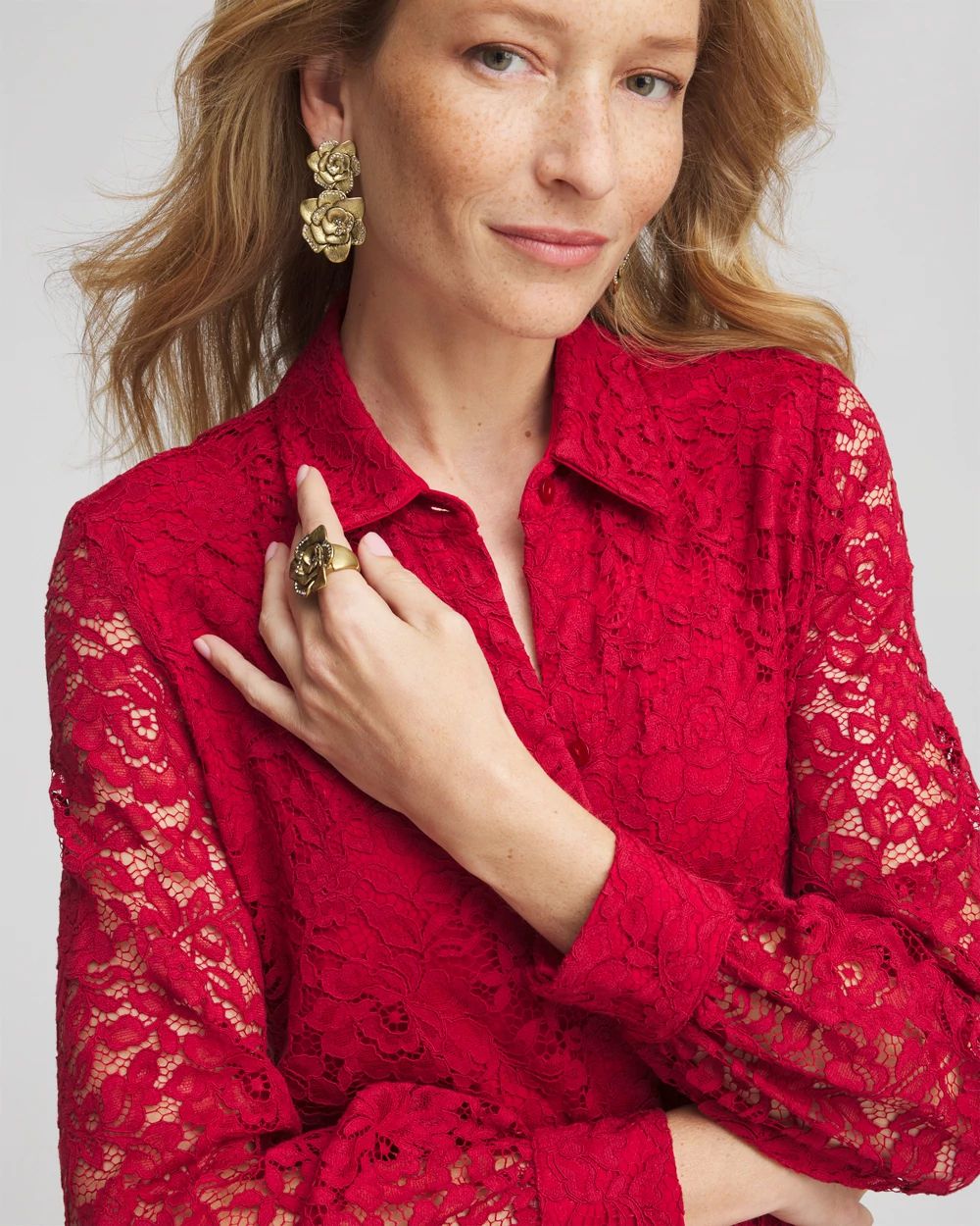Make an entrance with our new red Lace Maxi Shirt Dress. Meticulously made in typical Chico’s high-end fashion with you and your holiday experience top of mind. Accessorize with one of our new belts.