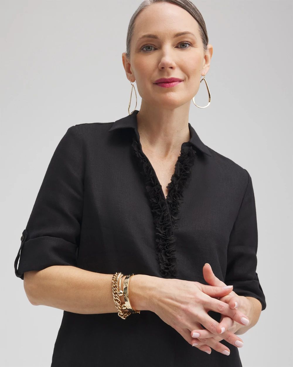 Add something new your seasonal wardrobe with our Linen 3D Floral Dress. This seasonal design features 3D floral applique on the half placket, plus a easy shift body. It's simple to look good in this eye-catching dress.