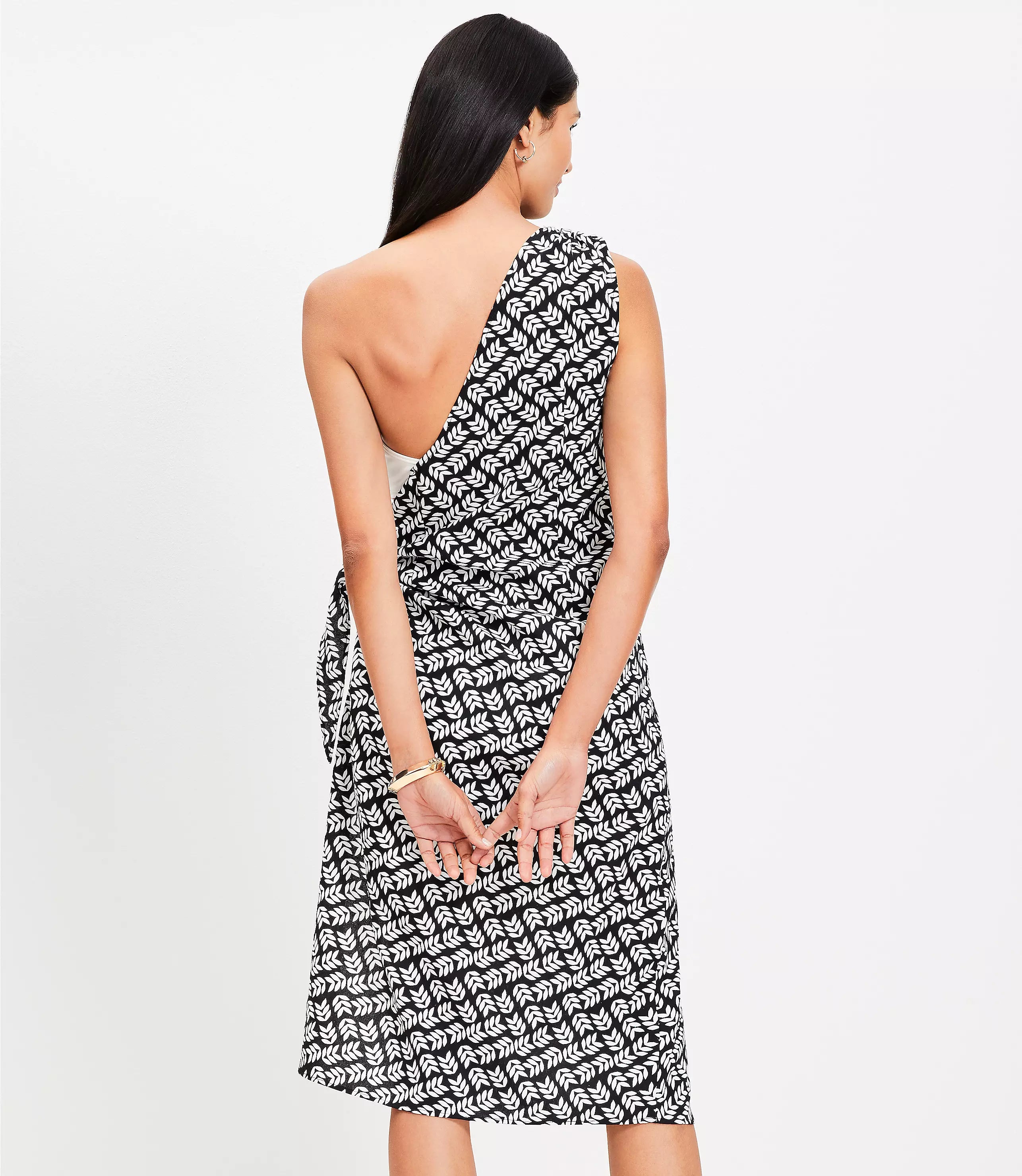 Airy light and versatile as a dress or swimsuit coverup, we love how this sarong dress is styled with adjustable side ties for an always perfect fit. One shoulder neckline. Side slit.