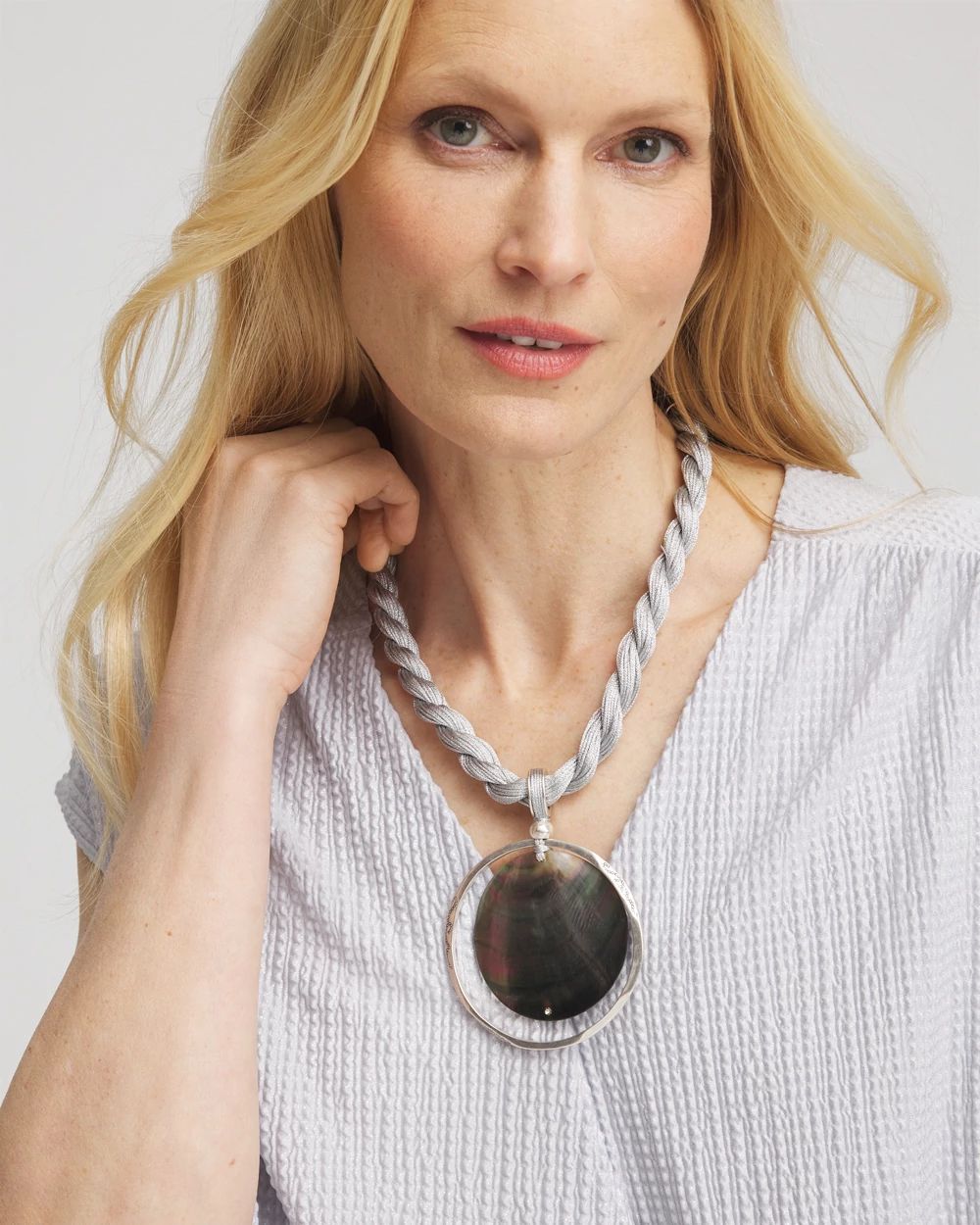 Embody the beach with this stunning new Black Lip Shell Pendant Necklace. Showcasing a sleek, soft silver braided rope 'chain' and genuine black lip shell pendant. Mix and match with like pieces from Chico's new Fresh Finds Collection.