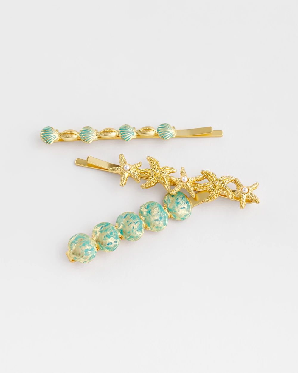 Goldtone hair pins that are absolutely stunning. Great for dressing up or casual days you just feel like a boost in confidence. Showcasing a special technique that recreates an antique turquoise seashell, golden, and pearl effect.