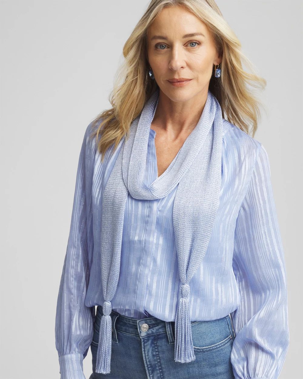 A classic staple for the season — our new Metallic Knit Skinny Scarf. With tassel detailing at both ends, a subtle all-over sheen this novelty knit is a must-have for the season of style, chilly weather, and festivities.