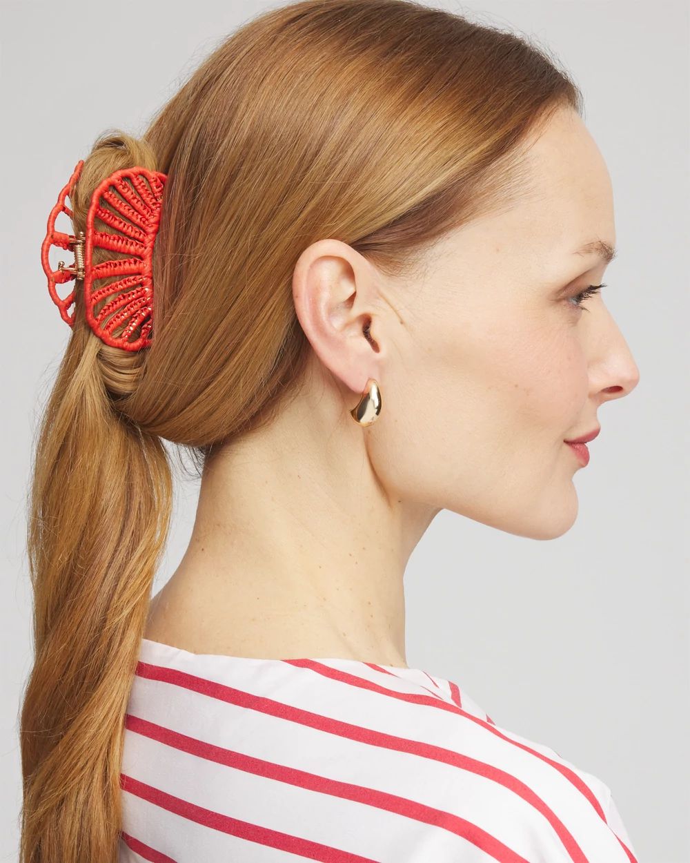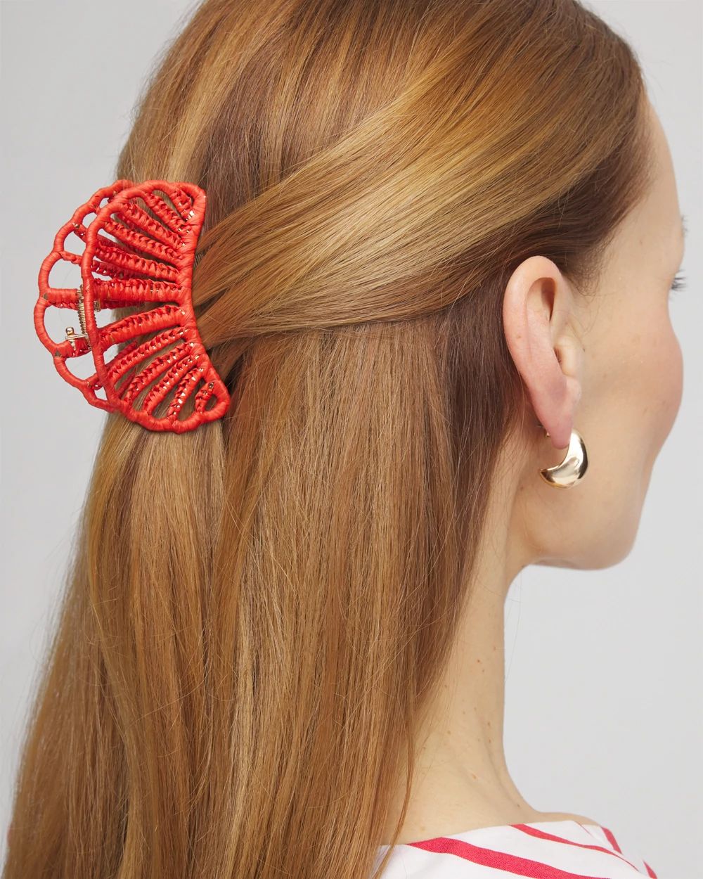Elevate your accessories for the season with this bright and brilliantly designed red raffia hair clip. Showcasing a special technique that recreates raffia in a statement hue.