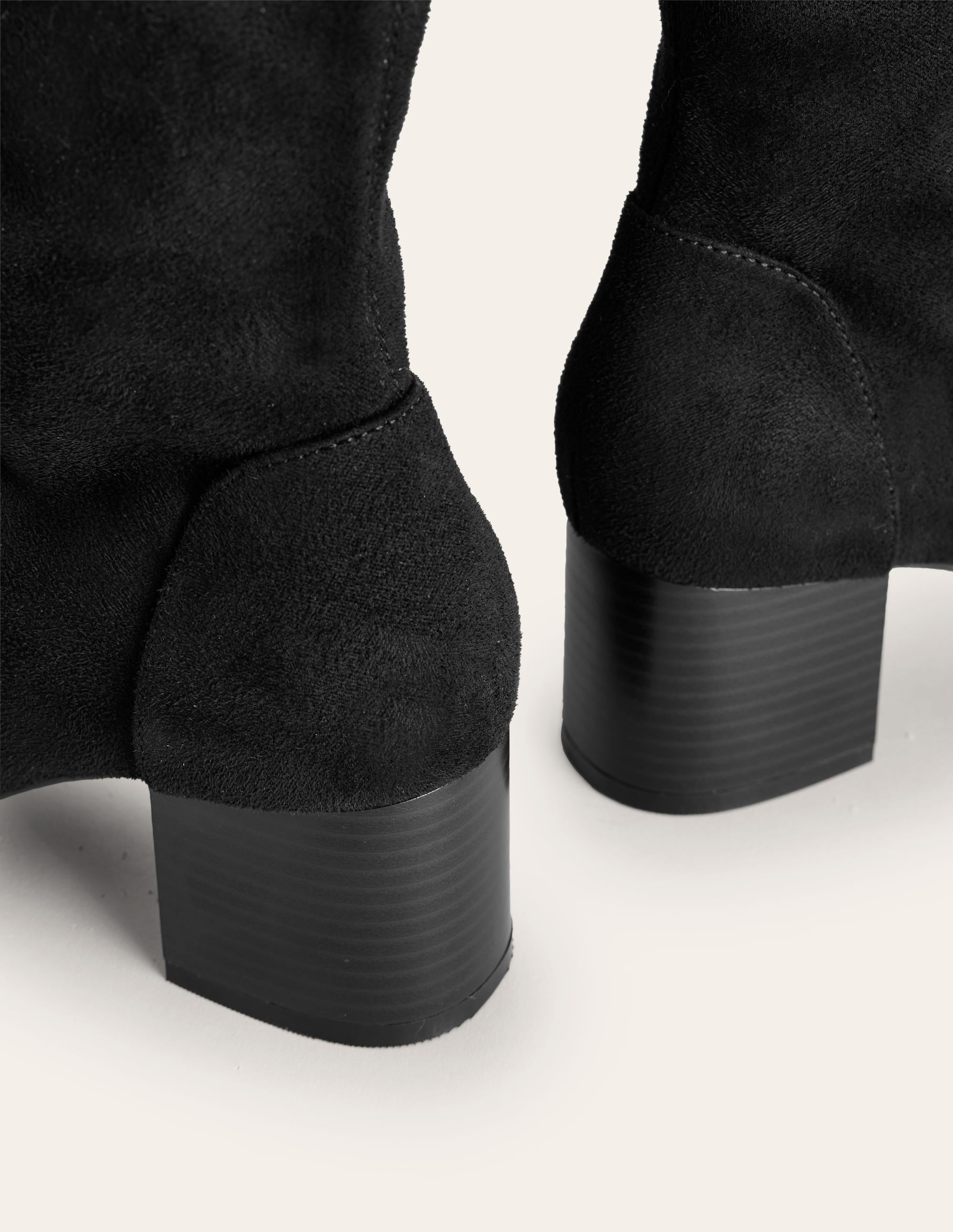 Polished and sleek, these faux suede knee boots elevate every look. They're set on a block heel and finished with a pointed toe. Busy social calendar coming up? They’re ready.